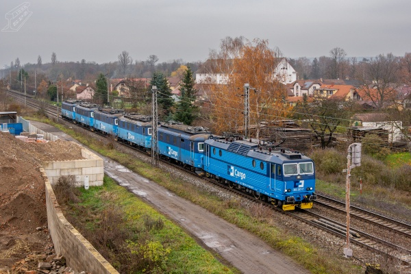 Na snímku, pořízeném dne 16. listopadu 2025 v Malém Újezdu mezi Mělníkem a Všetaty, je zachycen vlak Pn 52114 z Ústí nad Labem západ do Chocně, kdy lokomotivy určené ke šrotaci jsou za vlakovou lokomotivou 363.257 řazeny následovně: 122.006, 123.006, 123.002, 122.032 a 122.021.