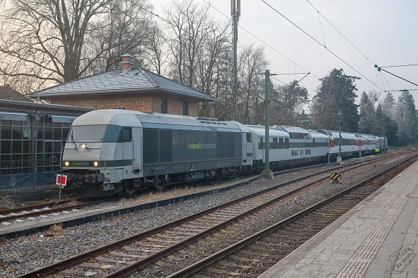 Na horním snímku je celá popisovaná souprava zachycena před odjezdem do Prahy na manipulační koleji stanice Großhesselohe Isartalbahnhof, za lokomotivou je patrná někdejší nádražní budova, kde je dnes sídlo RailAdventure. Dolní fotografie byla pořízena na zpáteční cestě z Prahy během úvratě vlaku Ex 13492 dopravce Gepard Express (na jehož licenci vlak v Česku jel) v Chebu. Do této stanice vlak dovezl stroj 183 500, v pozadí je patrný nástup lokomotivy 2016 902, která bude v čele vlaku až do další úvratě v Regensburgu.